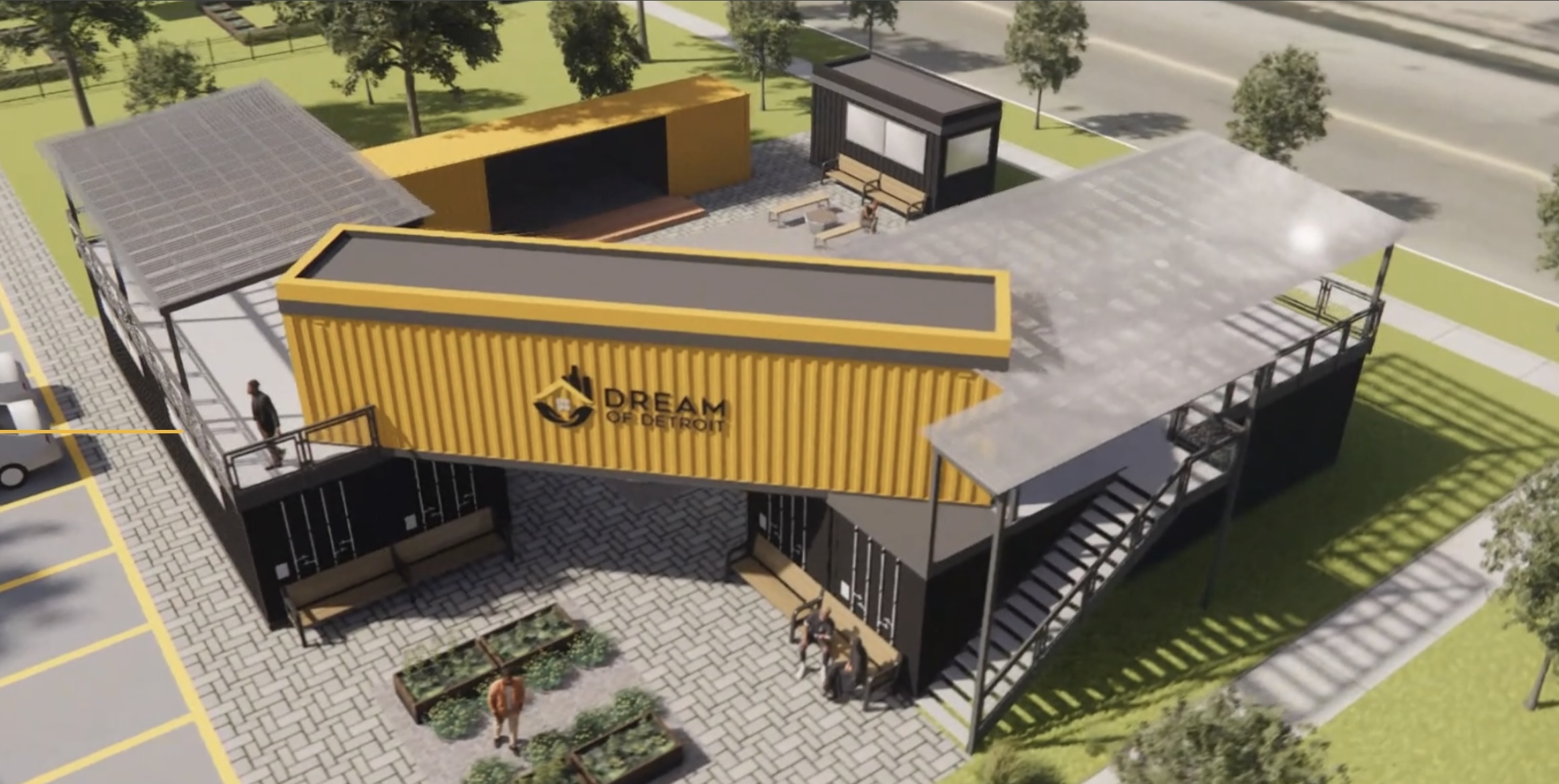 Dream of Detroit is using neighborhood land to build the DREAM Center. The DREAM Center is planned to be built from shipping containers and used as the official office for Dream of Detroit. This space will be used to transform vacant land into a place where people can benefit from digital literacy and technology services to build their careers. The DREAM Center will also have an outdoor event space where the community can gather or where small businesses can test their products.