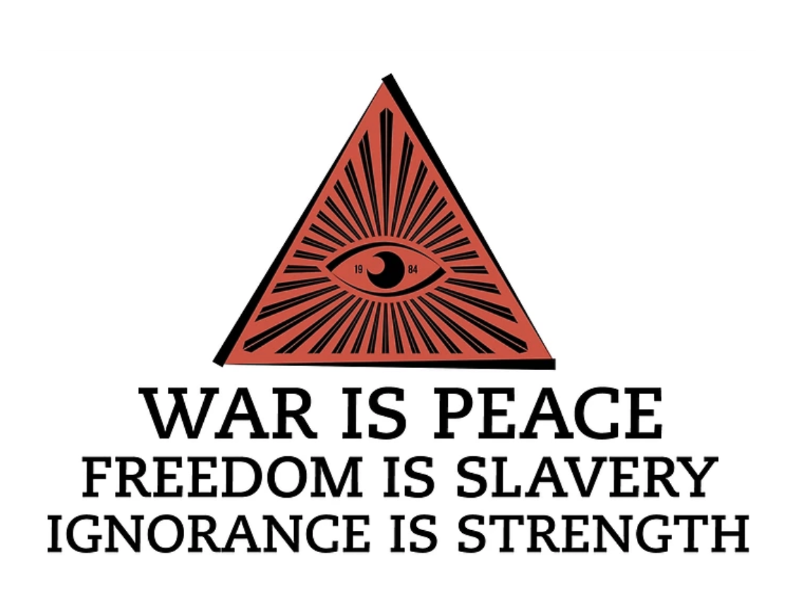 Newspeak, or politically invented language that confuses reality and fiction, uses phrases such as “fake news” and relies on inverted meanings. This can be exemplified by the slogan, “war is peace” and “freedom is slavery,” which forces mental surrender to the authoritative doctrines that maintain belief in the people in power at the expense of personal liberties. As Orwell warned, the goal of newspeak is to eliminate independent thinking by forcing conformity to what the government in “1984” called “goodthink.”