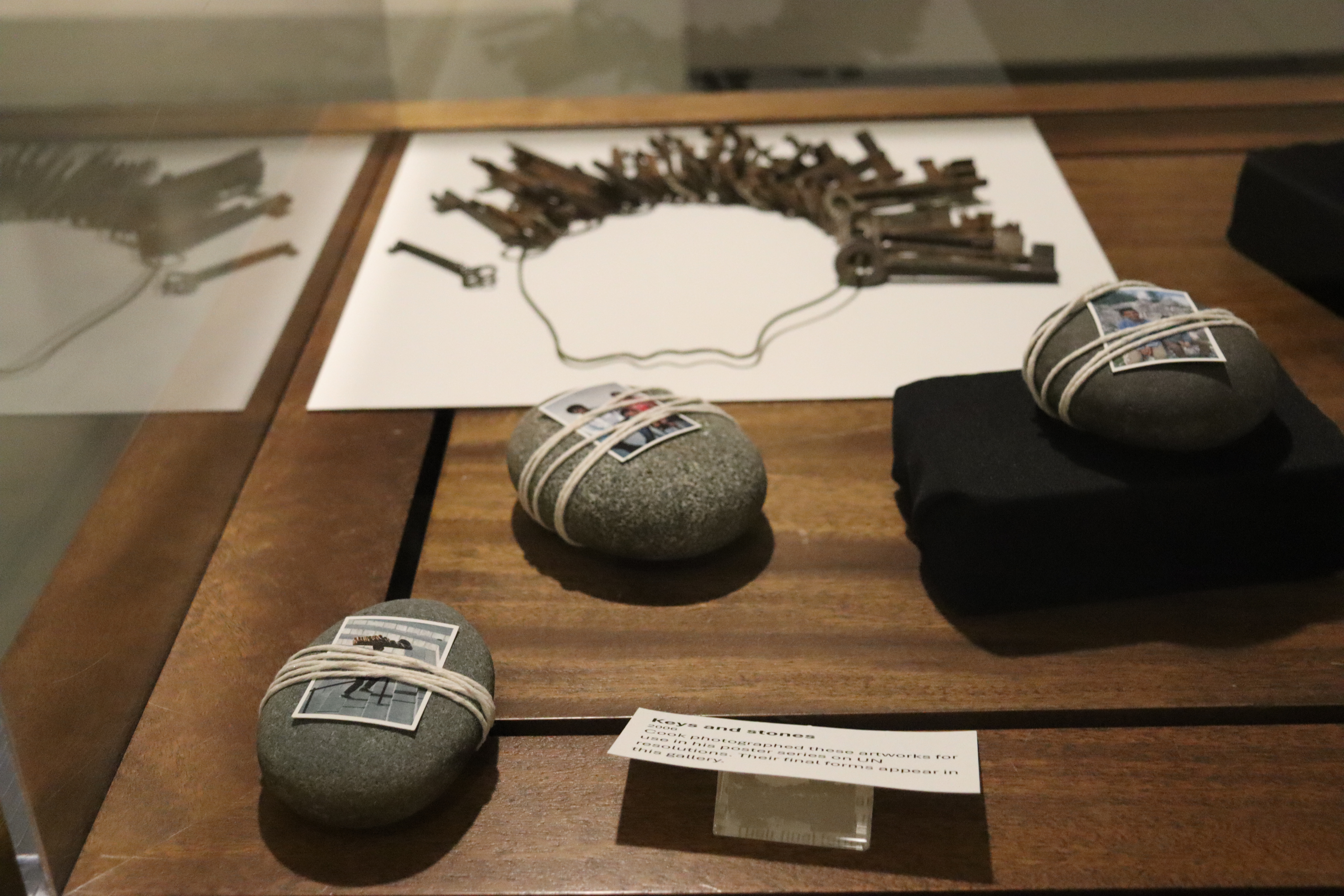 • “Living Stones” and “Keys to Peace” by the late Palestinian artist, Rajie Cook.  Photo by Bisan Azazi